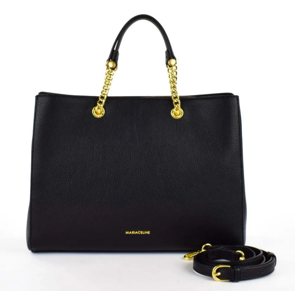 Borsa a mano e tracolla Maria Celine Julie 02. Borsa due manici realizzata in robusto materiale sintetico. Ampia tripla tasca principale chiusa da zip e bottoni, tasca interna chiusa da zip e tasche per piccoli oggetti. Tracolla amovibile.