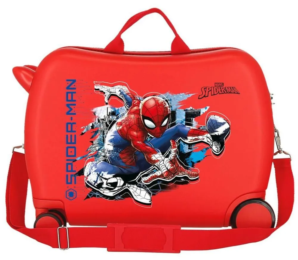 Valigia per bambini cavalcabile Marvel Spider Man Geo. Valigia 4 ruote realizzata in robusto ABS ultraleggero, maniglie superiori, tracolla amovibile regolabile in lunghezza. Interno foderato, con nastri per bloccare l’abbigliamento. Misura consentita come bagaglio a mano. Garanzia 2 anni.