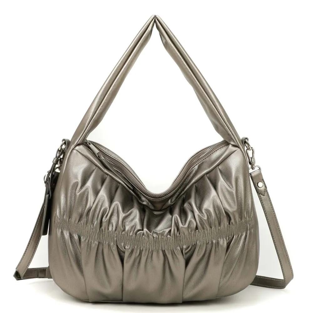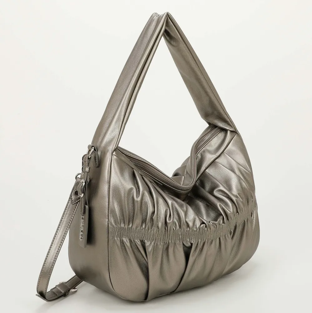 Borsa a spalla e tracolla Mimì-Muà . Borsa realizzata in robusto materiale sintetico. Ampia tasca principale chiusa da zip, tasca interna chiusa da zip e tasche per piccoli oggetti. Tracolla amovibile regolabile in lunghezza.