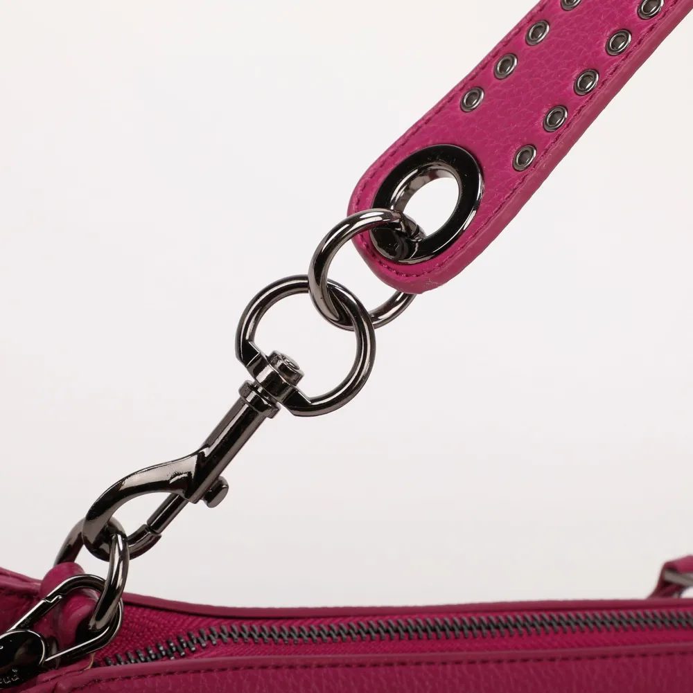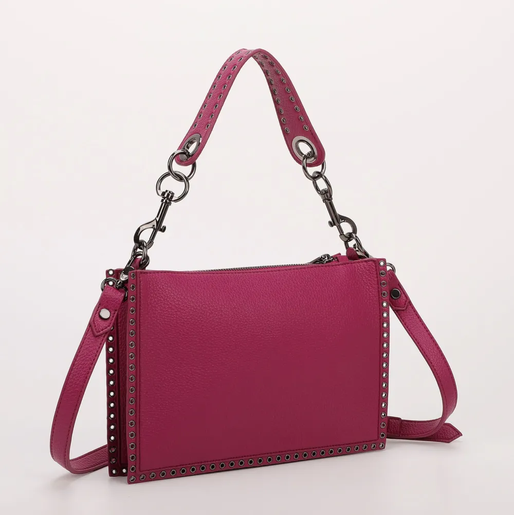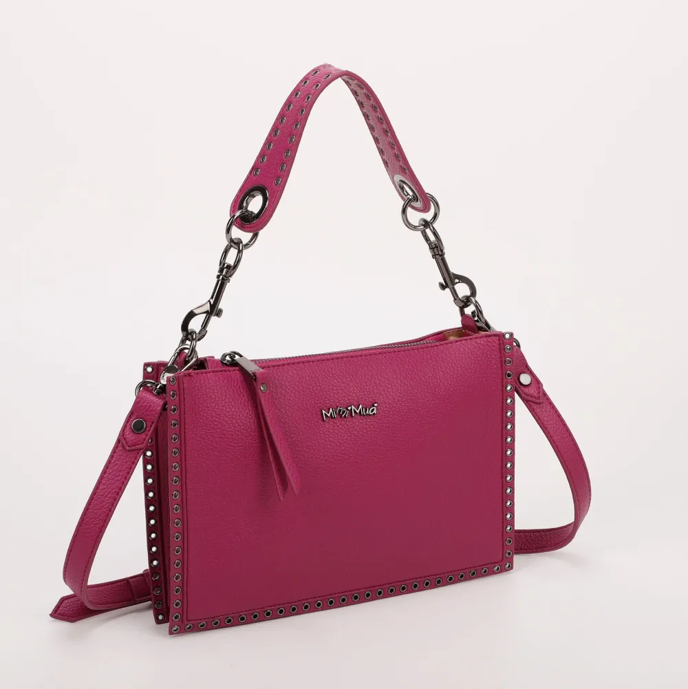 Borsa a spalla e tracolla Mimì-Muà . Borsa realizzata in robusto materiale sintetico. Ampia tasca principale chiusa da zip, tasca interna chiusa da zip e tasche per piccoli oggetti. Tracolla amovibile regolabile in lunghezza.