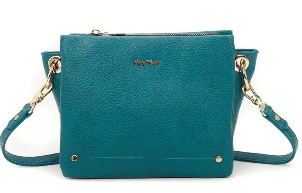 Borsa a tracolla Mimì-Muà . Borsa realizzata in robusto materiale sintetico. Ampia tripla tasca principale chiusa da zip e bottoni, tasca interna chiusa da zip e tasche per piccoli oggetti. Tracolla regolabile in lunghezza.