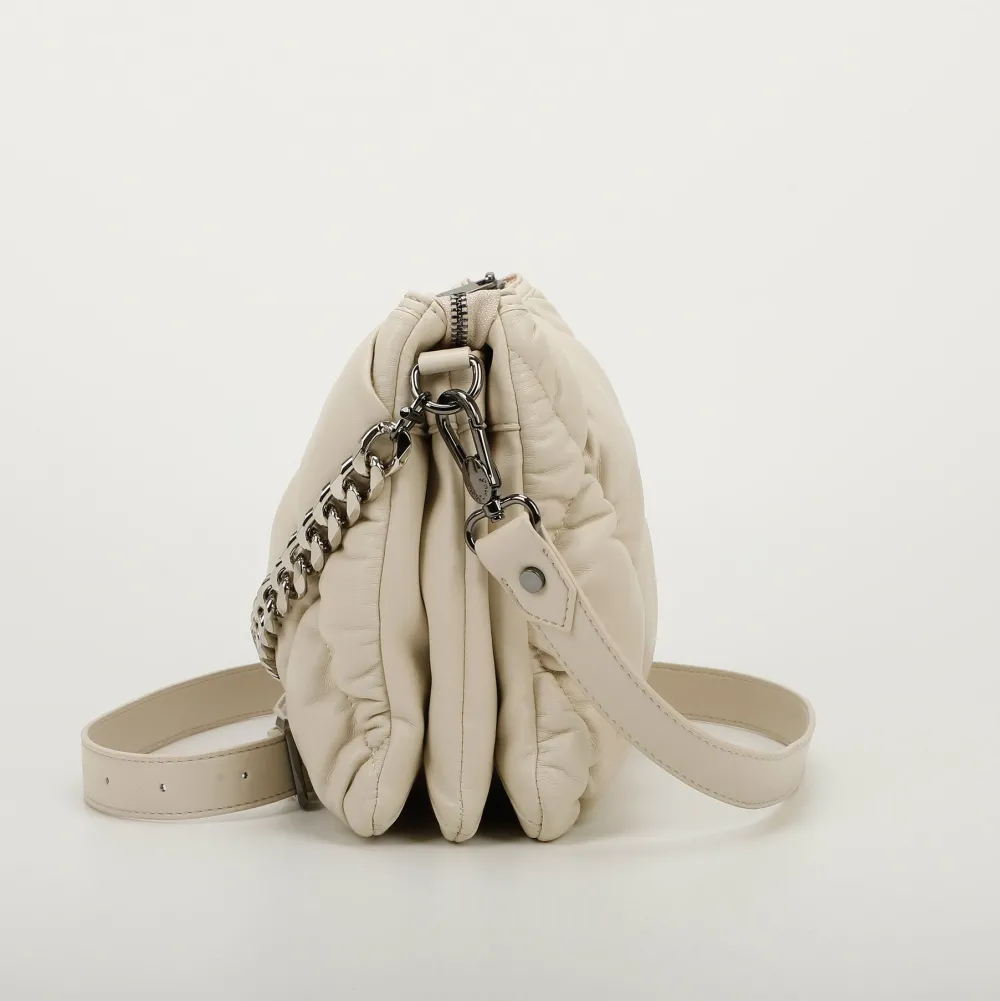 Borsa a tracolla Mimì-Muà . Borsa realizzata in robusto materiale sintetico. Ampia tripla tasca principale chiusa da zip, tasca interna chiusa da zip e tasche per piccoli oggetti. Tracolla regolabile in lunghezza.