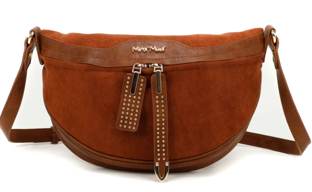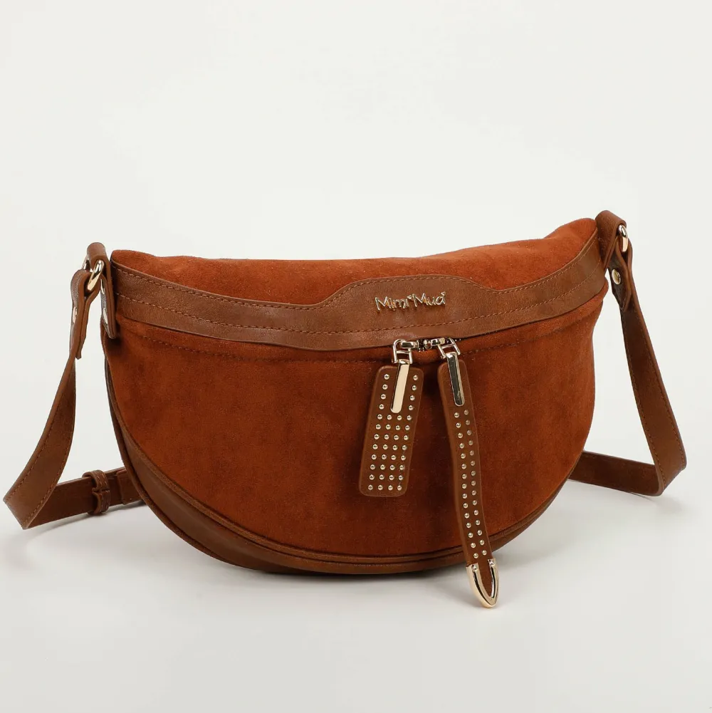 Marsupio a tracolla Mimì-Muà . Marsupio a tracolla realizzato in robusto materiale sintetico. Tasca principale chiusa da zip, tasca interna chiusa da zip. Tasca posteriore. Tracolla regolabile.