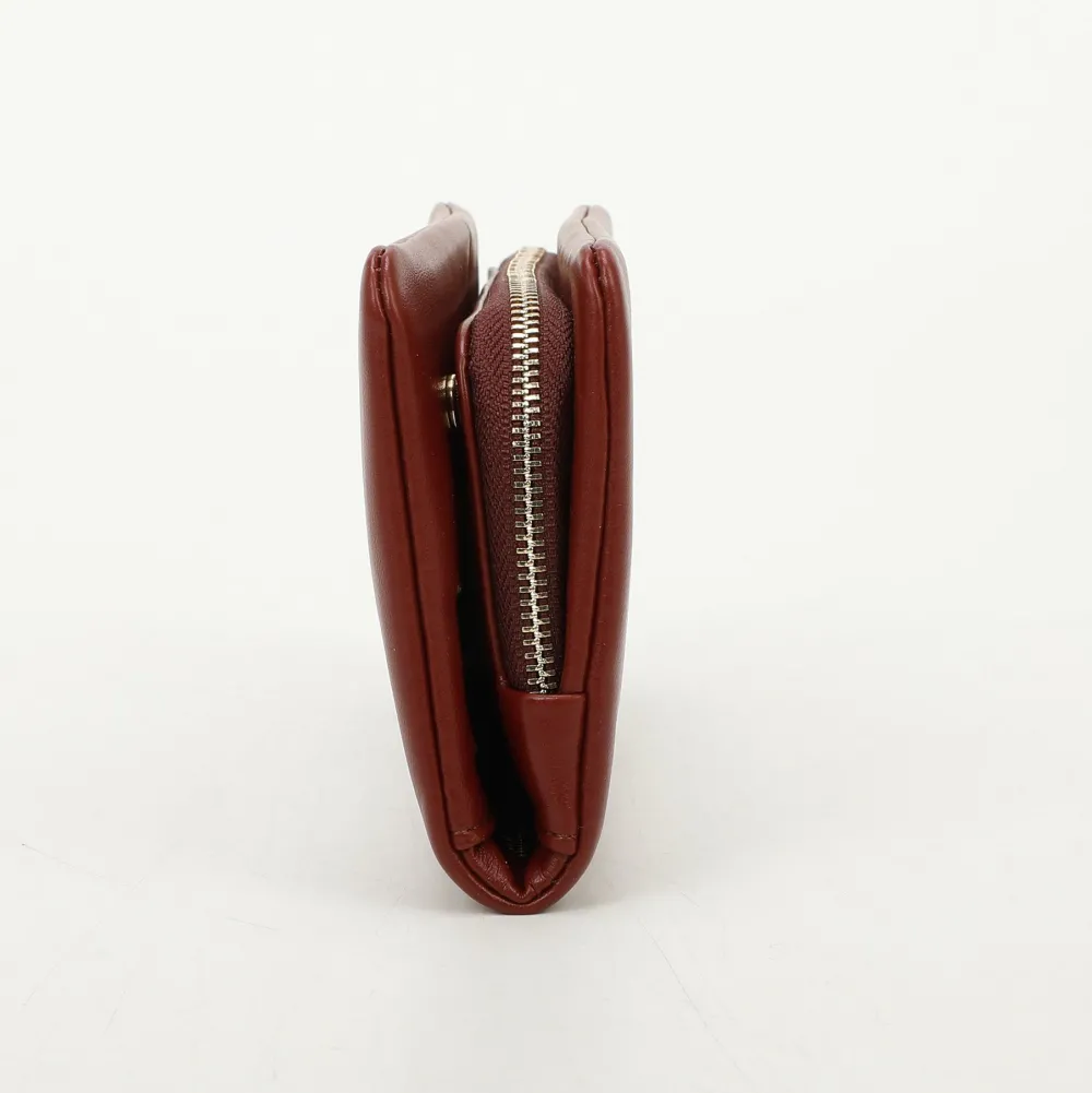 Portafoglio donna Mimì-Muà . Realizzato in robusta pelle sintetica, tasca principale con vano banconote e porta carte di credito. Tasca portamonete chiusa da zip.