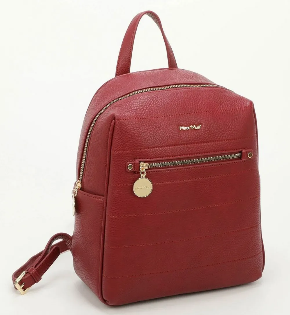 Zaino donna Mimì-Muà . Zaino realizzato in robusto materiale sintetico. Ampia tasca principale chiusa da zip, tasca interna chiusa da zip e tasche per piccoli oggetti. Tasca frontale e posteriore. Spallacci regolabili in lunghezza.