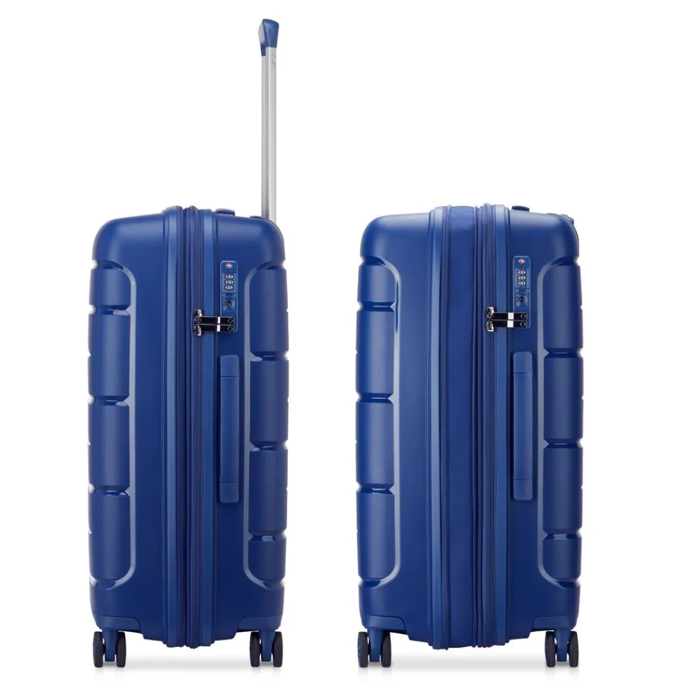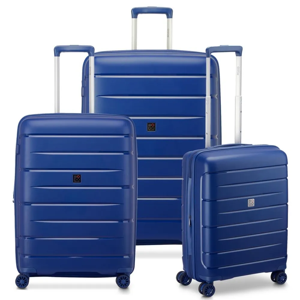 Set 3 Trolley MODO by Roncato Starlight 3.0. Trolley realizzato in polipropilene ultraleggero, 4 grandi ruote doppie piroettanti, carrello di traino telescopico con push botton, chiusura a tripla combinazione con sistema TSA per gli Stati Uniti. Interno completamente foderato, con divisorio, nastri per bloccare gli indumenti e tasche per piccoli oggetti. Zip di espansione.