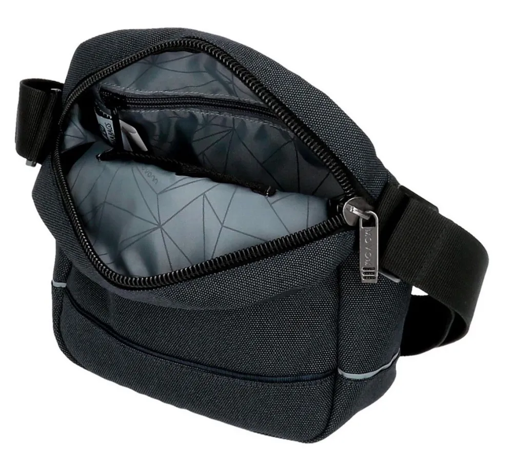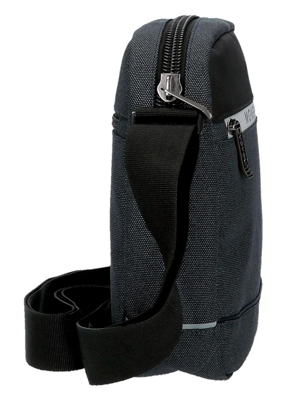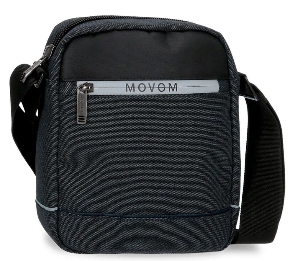Borsa uomo Movom Trimmed 51757. Borsa tracolla realizzata in robusto poliestere, con tracolla regolabile in lunghezza, due ampie tasche principali chiuse da zip, con tasche interne per piccoli oggetti. Tasca posteriore chiusa da zip. Logo frontale.