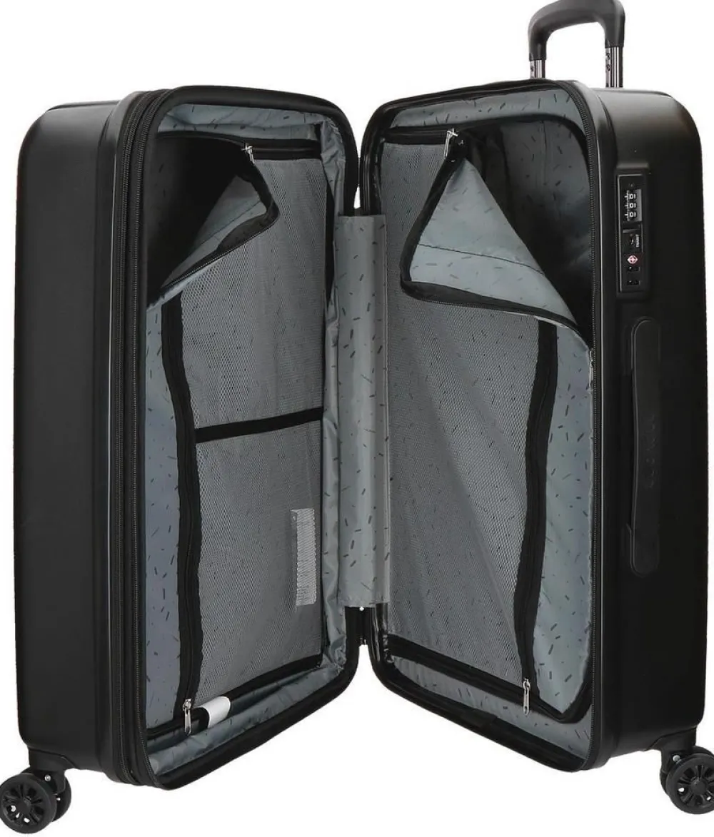 Trolley grande espandibile Movom Wood. Trolley realizzato in robusto ABS, quattro grandi e silenziose ruote piroettanti, sistema di sicurezza a tripla combinazione e TSA per gli Stati Uniti. Carrello di traino con push botton, maniglia di servizio laterale e superiore. Interno completamente foderato, con doppio divisorio per bloccare l’abbigliamento e divisorio. Zip di espansione. Garanzia 2 anni.
