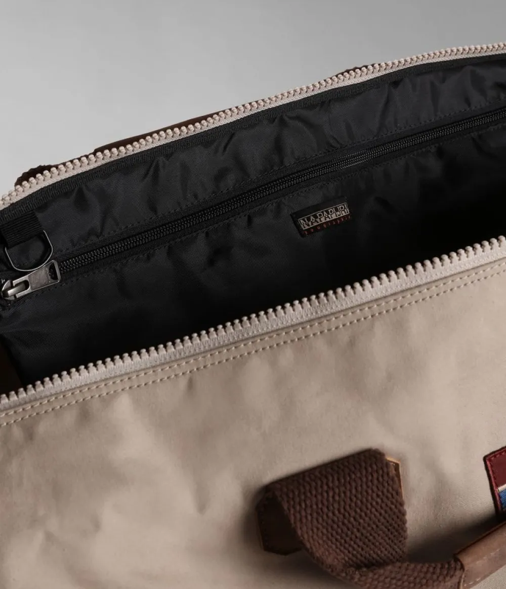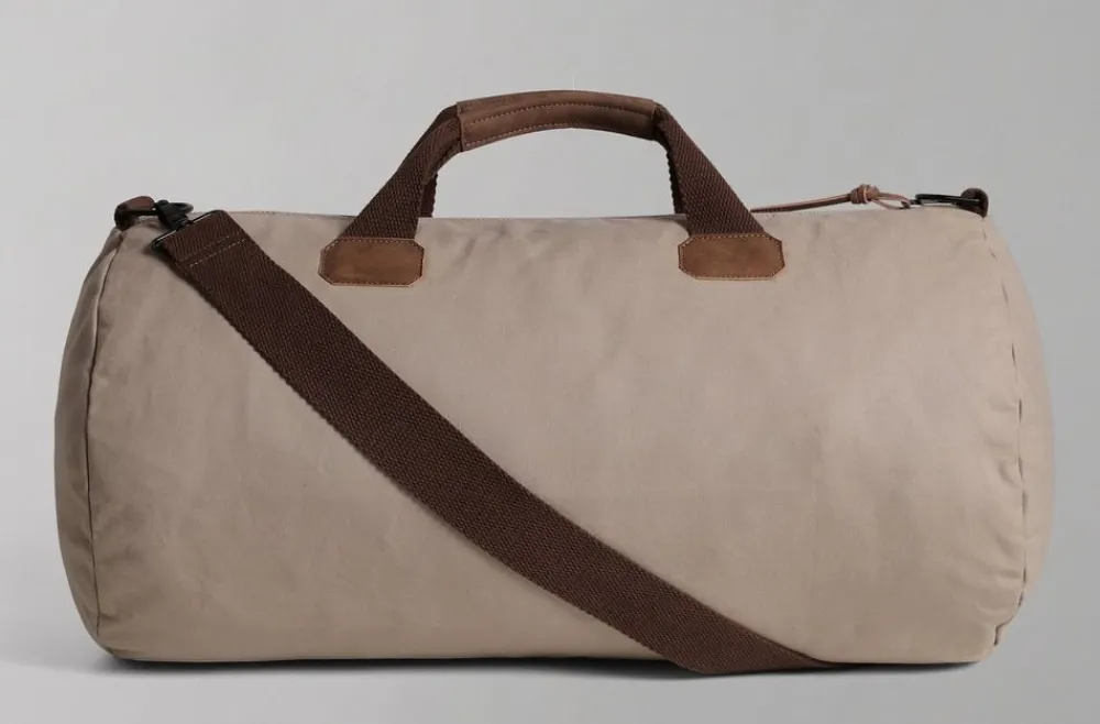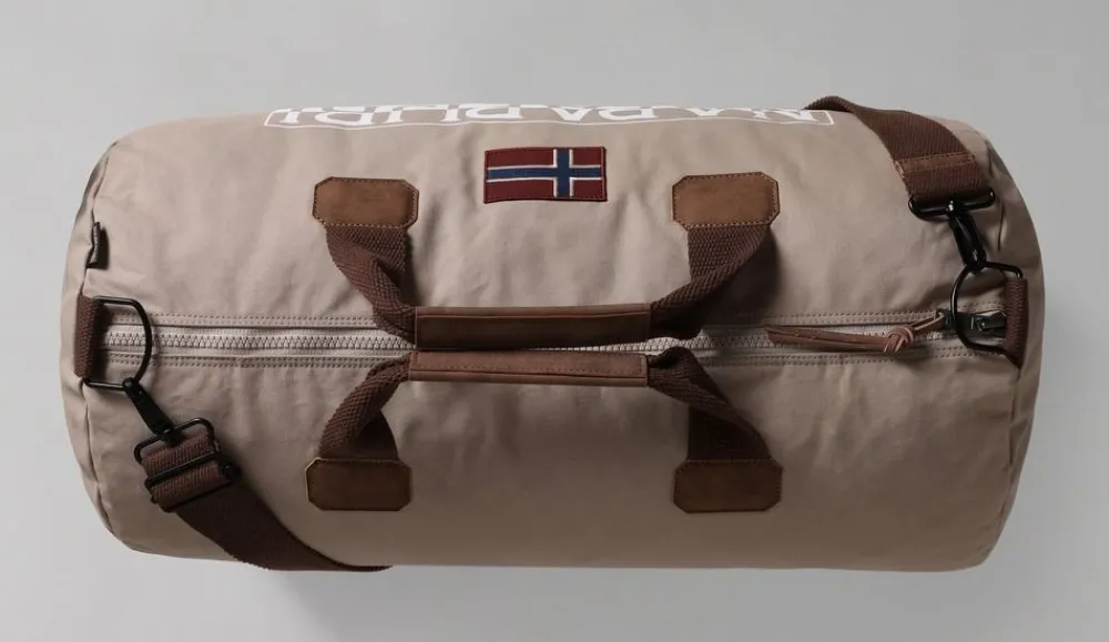 Borsone Napapijri Bering. Borsone due manici pensato per il viaggio o la palestra. Realizzato in robusto cotone con rifiniture in pelle. Ampia tasca principale chiusa da zip, manici in morbido cotone. Stampa Napapijri frontale, tasca interna chiusa da zip. Tracolla amovibile regolabile in lunghezza.