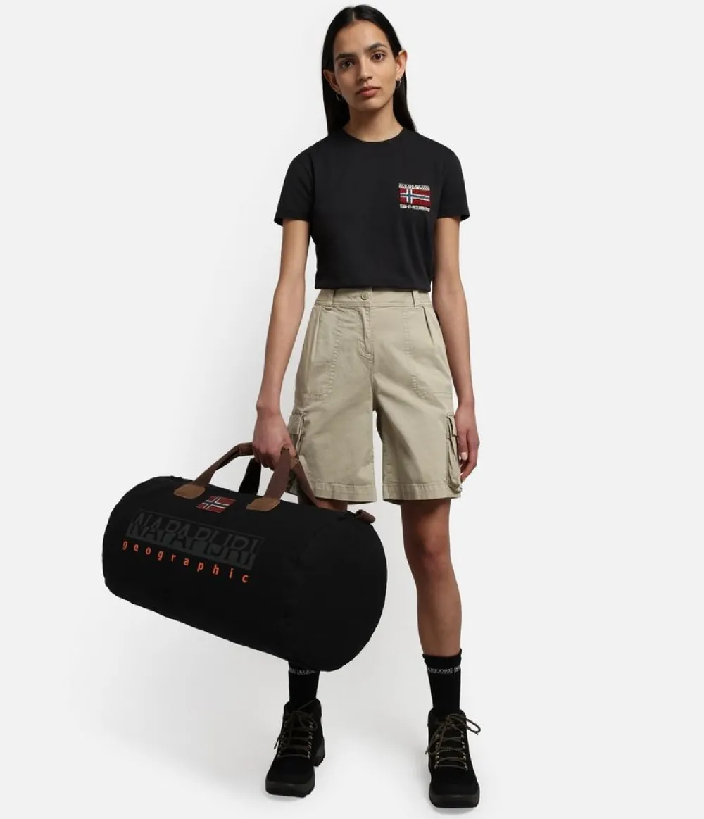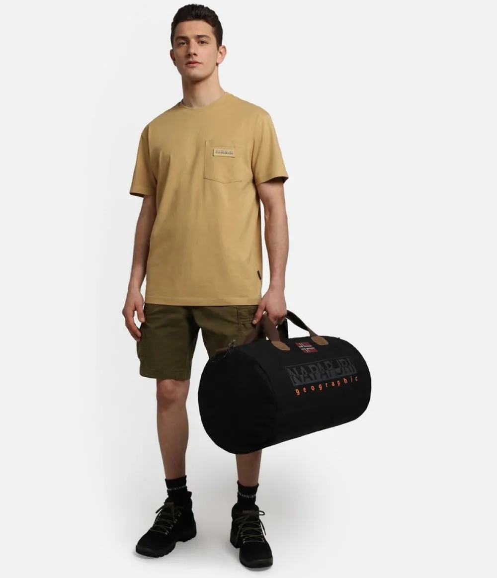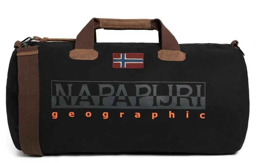 Borsone Napapijri Bering. Borsone due manici pensato per il viaggio o la palestra. Realizzato in robusto cotone con rifiniture in pelle. Ampia tasca principale chiusa da zip, manici in morbido cotone. Stampa Napapijri frontale, tasca interna chiusa da zip. Tracolla amovibile regolabile in lunghezza.
