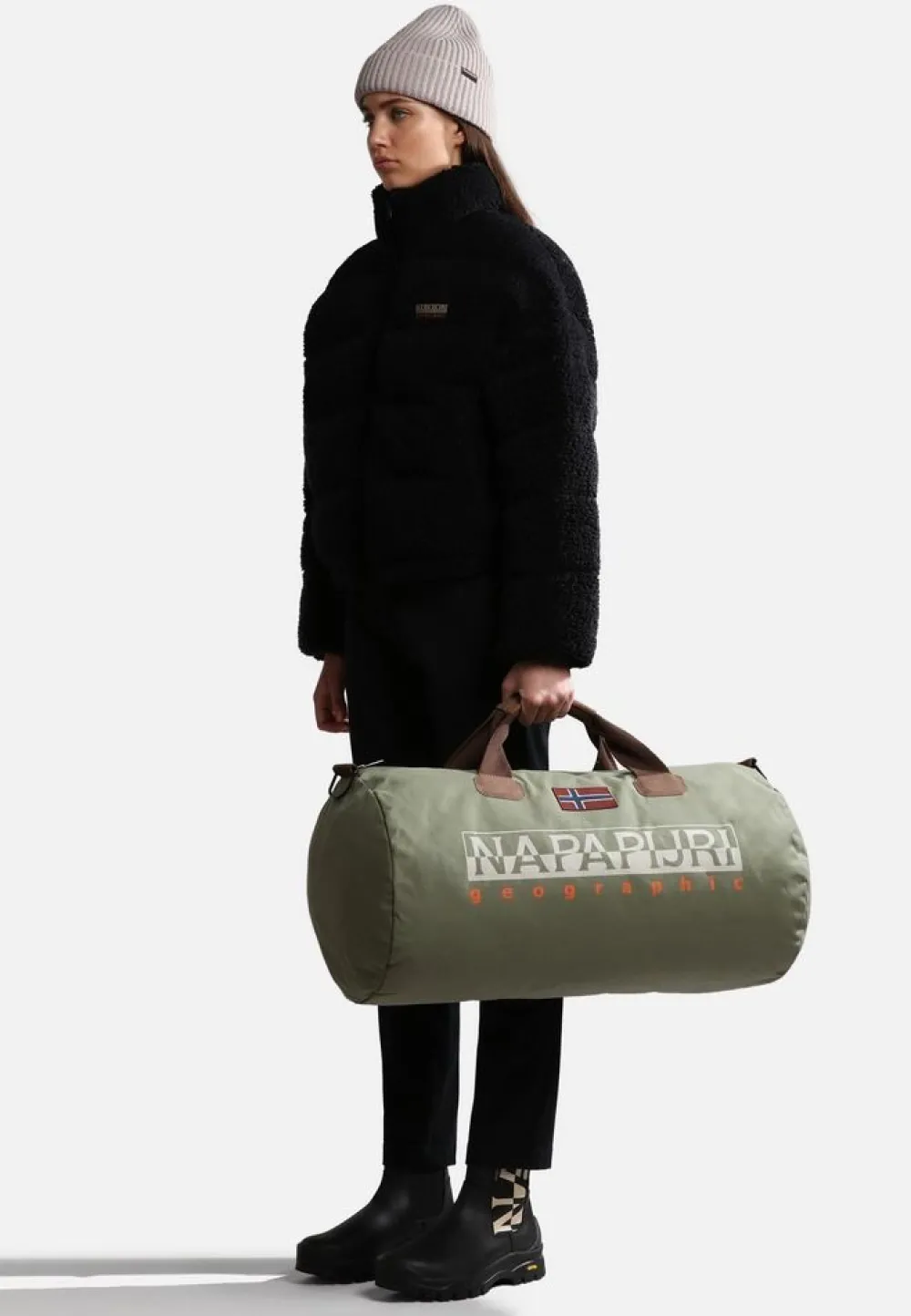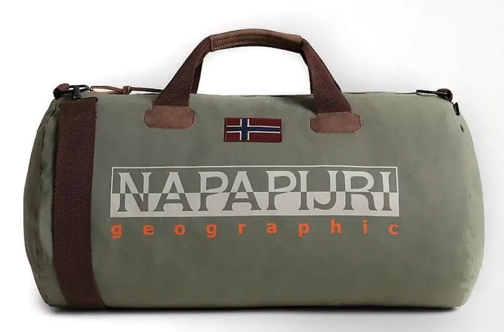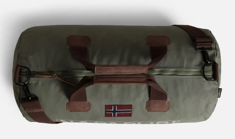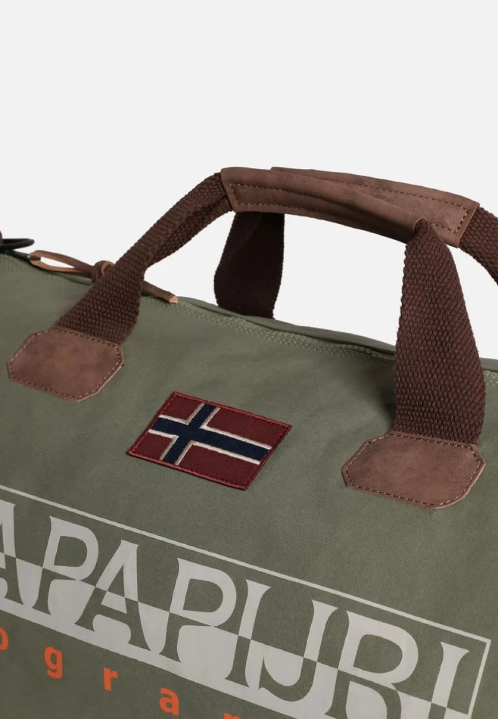 Borsone Napapijri Bering. Borsone due manici pensato per il viaggio o la palestra. Realizzato in robusto cotone con rifiniture in pelle. Ampia tasca principale chiusa da zip, manici in morbido cotone. Stampa Napapijri frontale, tasca interna chiusa da zip. Tracolla amovibile regolabile in lunghezza.