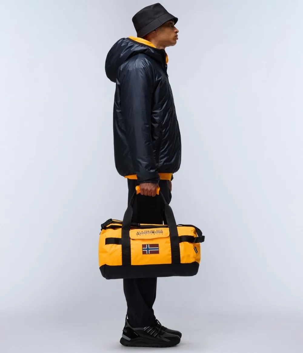 Borsone Zaino Napapijri Bering Travel Small. Realizzato in robusto poliestere gommato, resistente all’acqua. Ampia tasca principale chiusa da zip. Maniglie superiori. Grazie agli spallacci regolabili in lunghezza, è possibile utilizzarlo come borsa o come zaino. Logo frontale.