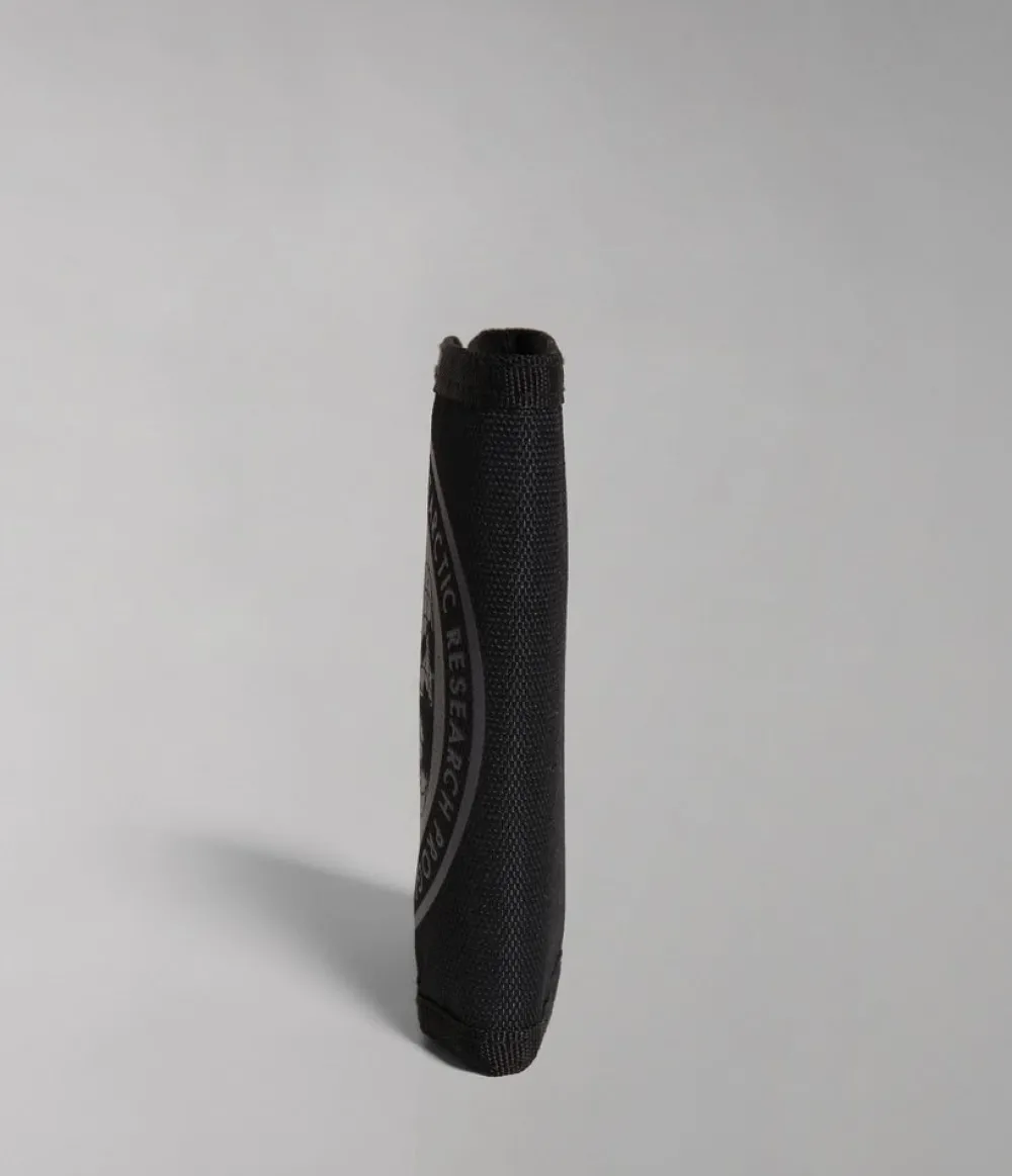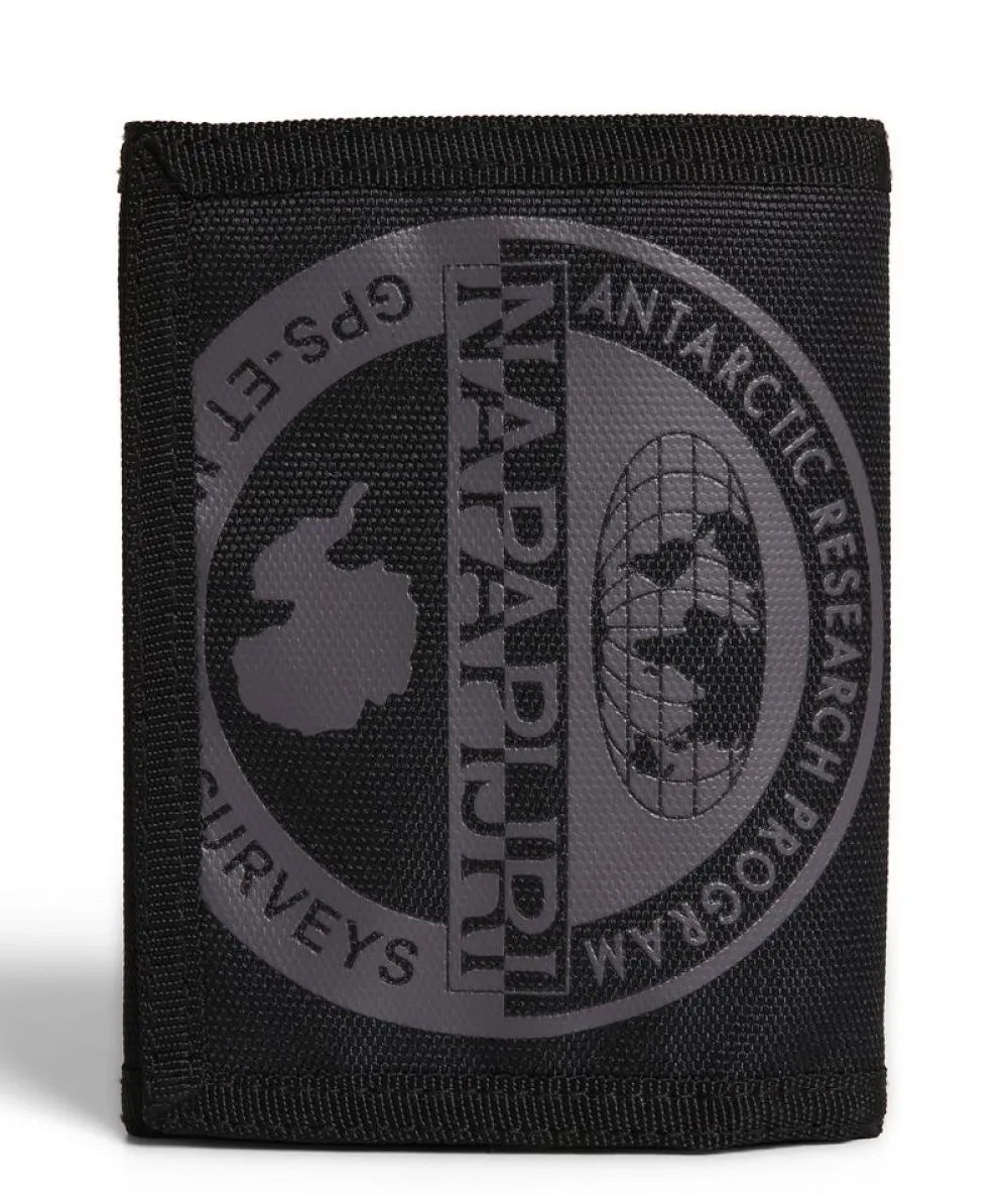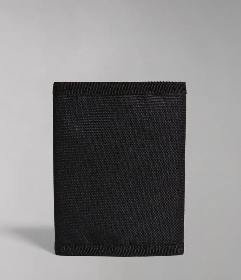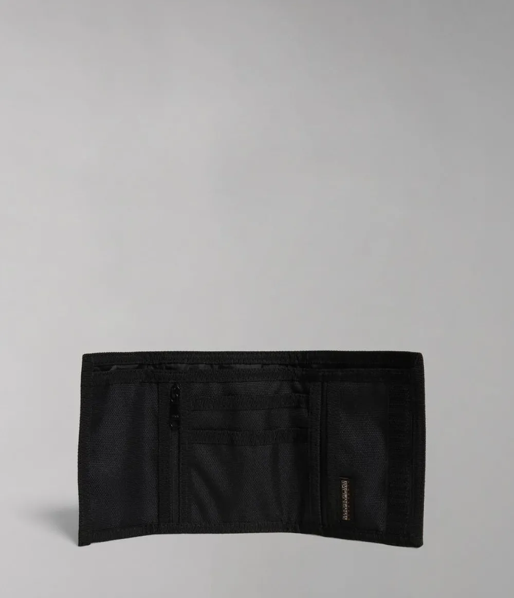 Portafoglio Napapijri Happy Wallet 4. Realizzato in robusto poliestere, con chiusura a strap, vano porta banconote e portadocumenti interno. Tasca portamonete chiusa da zip.