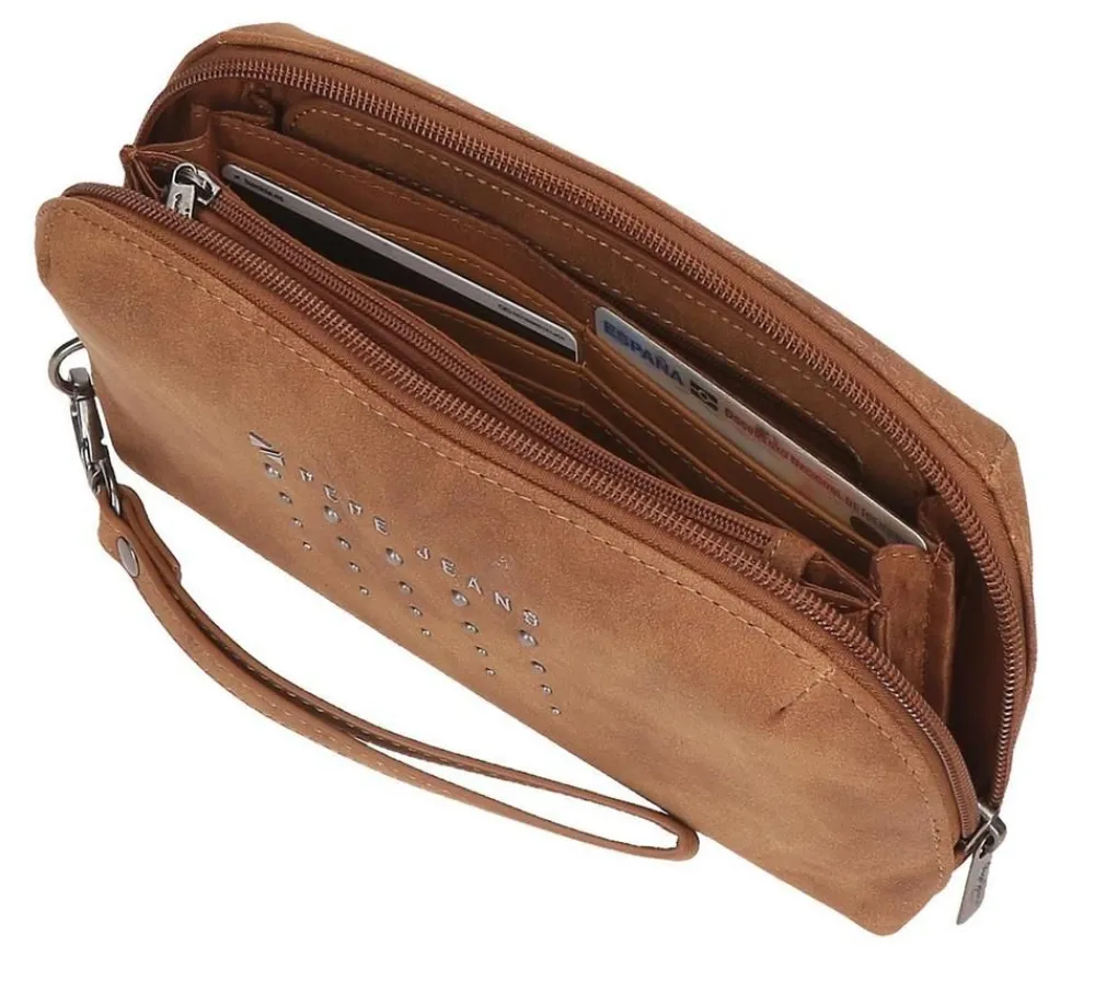 Busta portafoglio Pepe Jeans Holly 77541. Realizzato in robusto PVC, ampia tasca principale chiusa da zip, per monete, documenti e chiavi. Laccio da polso amovibile.
