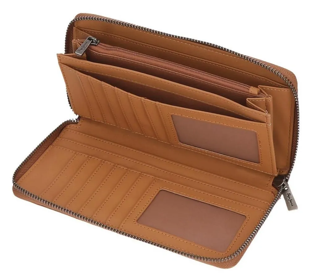 Portafoglio donna Pepe Jeans Holly 77585. Realizzato in robusto PVC, ampia tasca principale chiusa da zip, per banconote, monete e documenti. Protezione RFID.