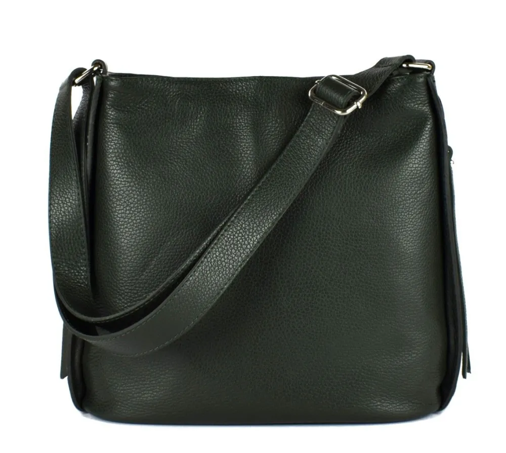 Borsa a mano e tracolla 20089 – Made in Italy. Borsa realizzata in vera pelle italiana, ampia tasca principale chiusa da zip e due tasche laterali chiuse da magnete, tasche interne per piccoli oggetti. Tracolla regolabile in lunghezza.
