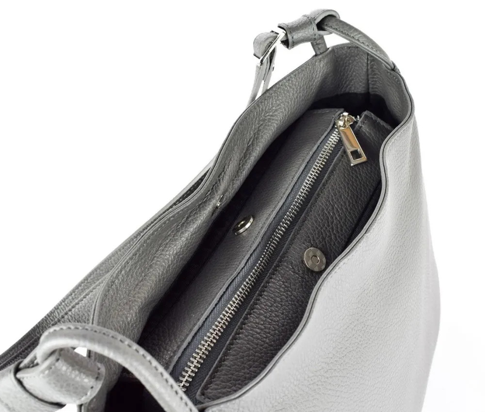 Borsa a mano e tracolla 20089 – Made in Italy. Borsa realizzata in vera pelle italiana, ampia tasca principale chiusa da zip e due tasche laterali chiuse da magnete, tasche interne per piccoli oggetti. Tracolla regolabile in lunghezza.
