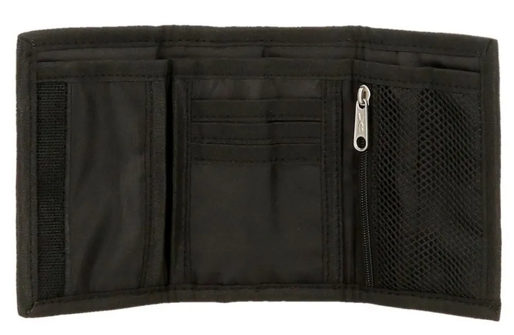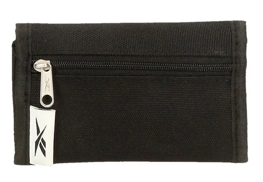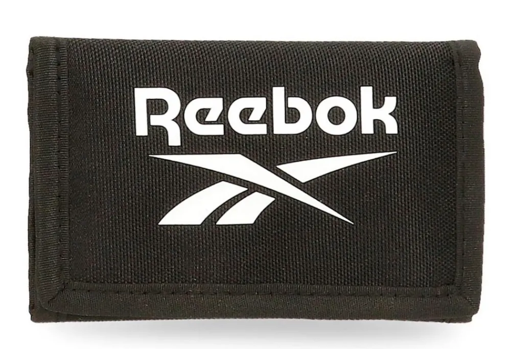 Portafoglio Reebok Boston. Realizzato in robusto poliestere, con chiusura a strap, vano porta banconote e portadocumenti interno. Tasca portamonete chiusa da zip.