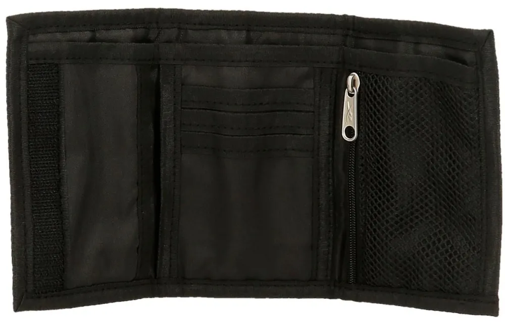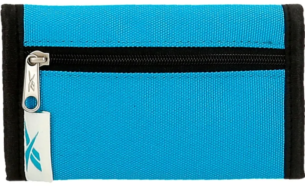 Portafoglio Reebok Boston. Realizzato in robusto poliestere, con chiusura a strap, vano porta banconote e portadocumenti interno. Tasca portamonete chiusa da zip.