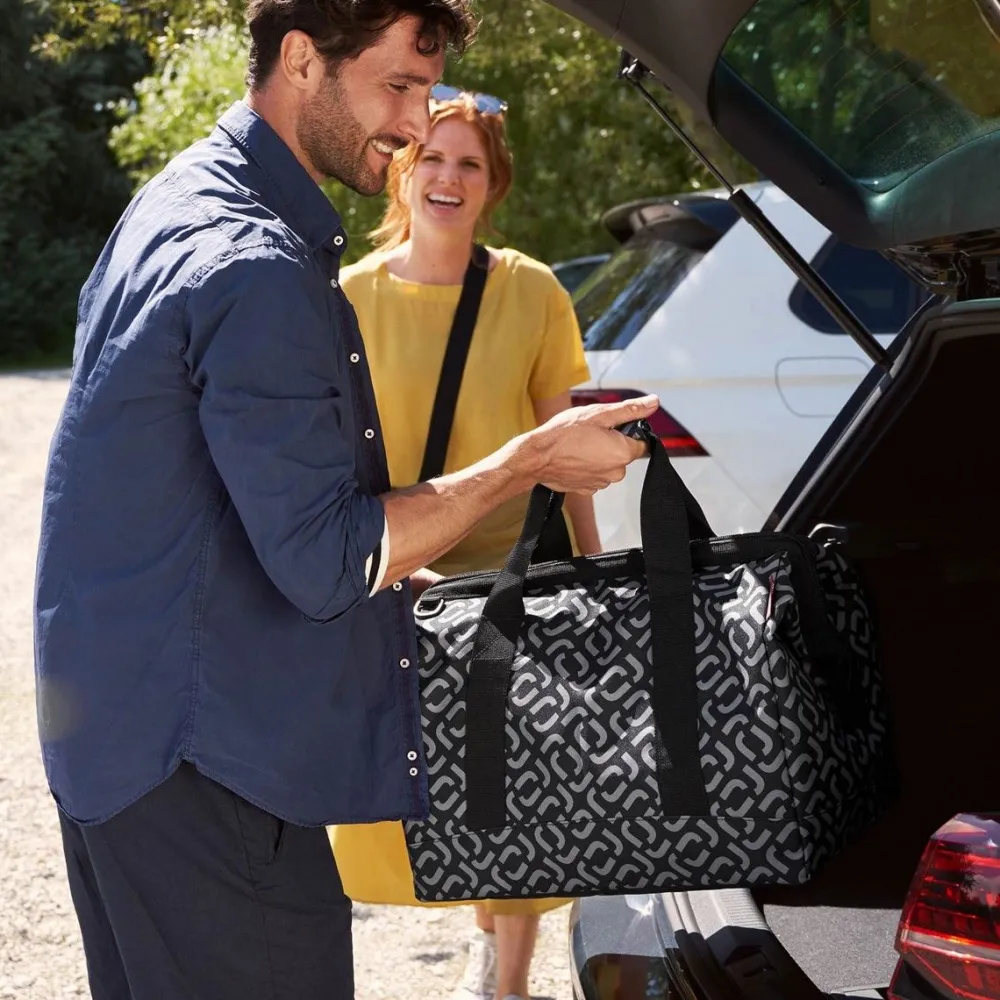 Borsone tracolla Reisenthel allrounder L. Realizzato in robusto poliestere, scomparto principale chiuso da zip con ampia apertura, tracolla imbottita e regolabile in lunghezza, tasca frontale, 6 tasche interne per piccoli oggetti.