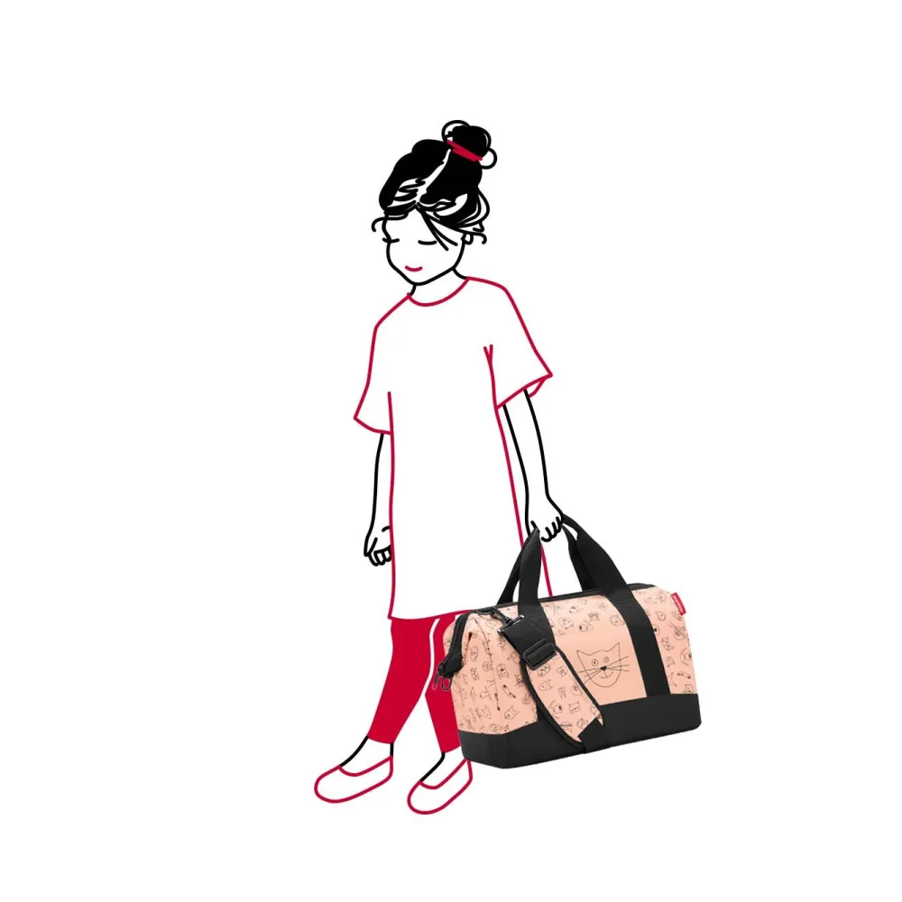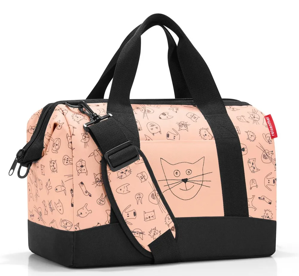 Borsone tracolla Reisenthel allrounder M Kids. Realizzato in robusto poliestere, scomparto principale chiuso da zip con ampia apertura, tracolla imbottita e regolabile in lunghezza, tasca frontale, 6 tasche interne per piccoli oggetti. Passante posteriore per fissare la borsa a qualsiasi trolley.