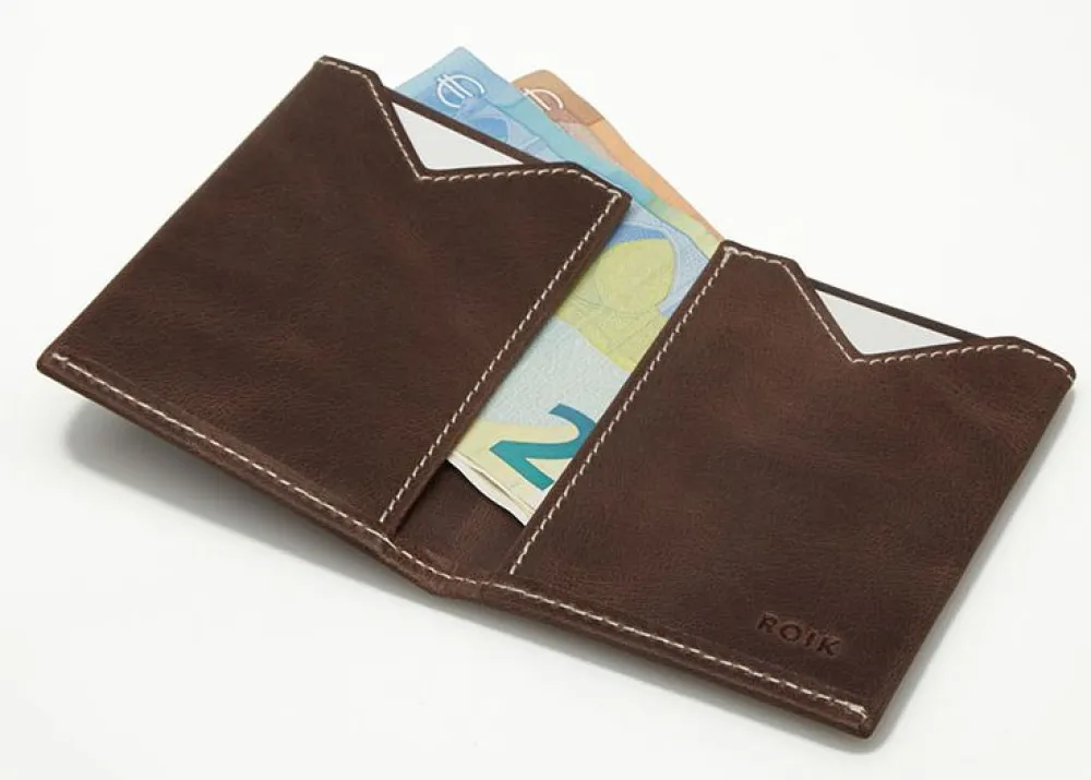 Portafoglio sottile ROIK Land. Realizzato in vera pelle bovina di alta qualità , spazio per conservare fino a 10 carte, protezione RFID nelle tasche interne. Il vano principale consente di inserire banconote senza doverli piegare (fino al taglio 50 €). Tasca esterna ad accesso rapido consente di inserire due carte di uso frequente. Il modello City consente di inserire tutto il necessario, rimanendo ultra-compatto ed ultra-sottile. Garanzia 3 anni.