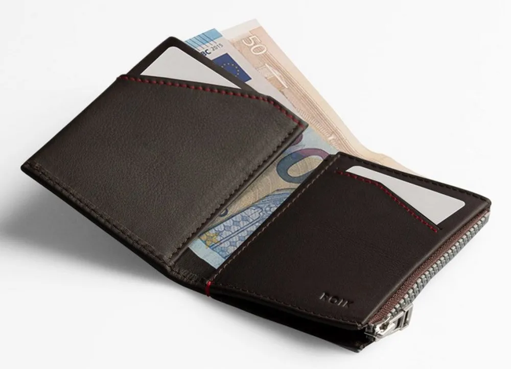 Portafoglio sottile ROIK Zip Coin. Realizzato in vera pelle bovina di alta qualità , spazio per conservare fino a 9 carte, protezione RFID nelle tasche interne. Il vano principale consente di inserire banconote senza doverle piegare (fino al taglio 50 €). La tasca esterna ad accesso rapido consente di inserire tre carte di uso frequente. Tasca esterna chiusa da zip per moneta o chiavi. Garanzia 3 anni.
