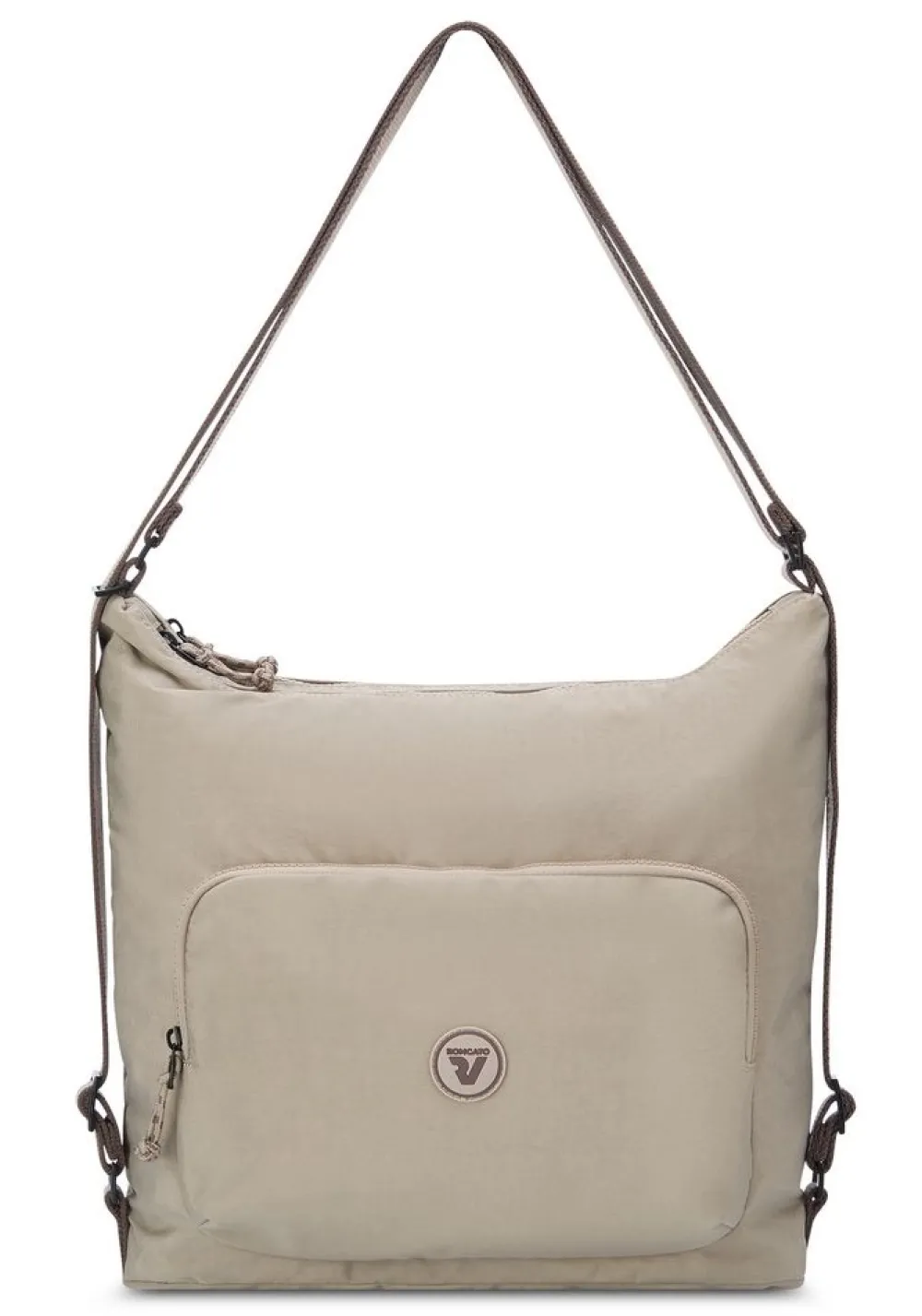 Borsa a spalla zaino Roncato Rolling 5233. Borsa realizzata in robusto nylon, ampia tasca principale chiusa da zip, organizzazione interna con tasche per piccoli oggetti, tasca chiusa da zip. Tasca frontale. Possibilità di portare la borsa a spalla o come zaino.