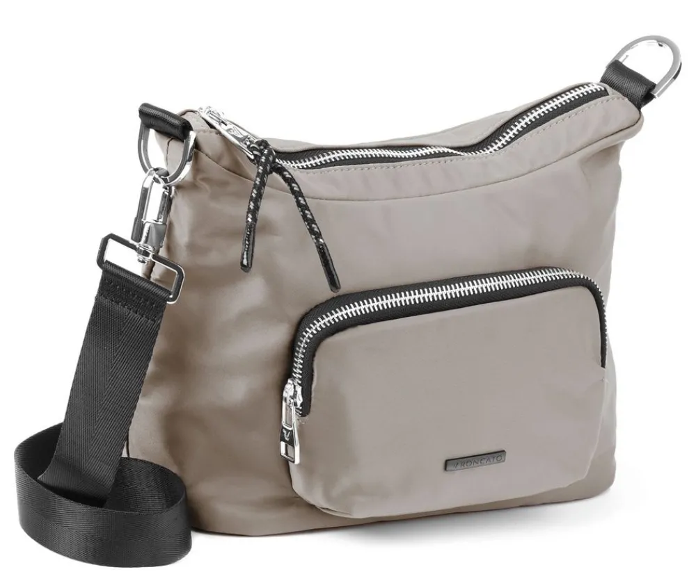 Borsa a tracolla Roncato Portofino 1108. Borsa realizzata in robusto poliestere riciclato, ampia tasca principale chiusa da zip, organizzazione interna con tasche per piccoli oggetti. Tasca frontale.