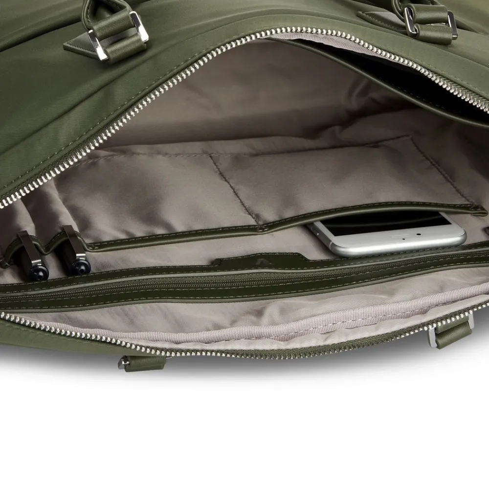 Borsa lavoro donna Roncato Woman Biz 2323. Borsa realizzata in robusto poliestere, ampia tasca principale chiusa da zip, tasca frontale per piccoli oggetti e passante asta trolley posteriore. Interno con vano gommato per pc 15,6″ e tablet. Organizzazione per documenti e piccoli oggetti. Due ampi manici superiori e tracolla amovibile e regolabile in lunghezza. Garanzia 2 anni.