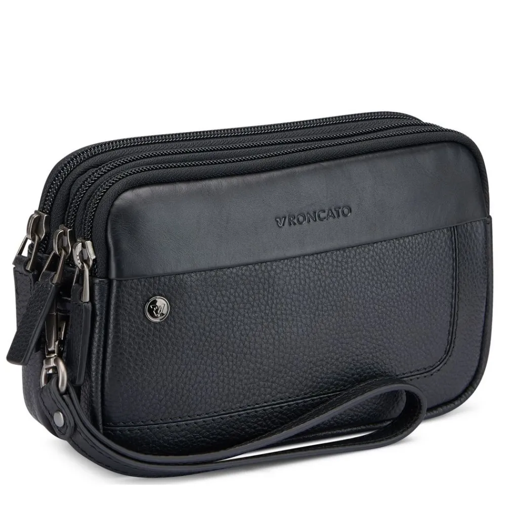 Borsa uomo Roncato Alaska 2425. Borsa a tracolla realizzata in vera pelle. Due ampie tasche principali chiuse da zip. Tasca frontale chiusa da zip e tasca posteriore chiusa da zip. Tracolla regolabile in lunghezza. Logo Roncato frontale.