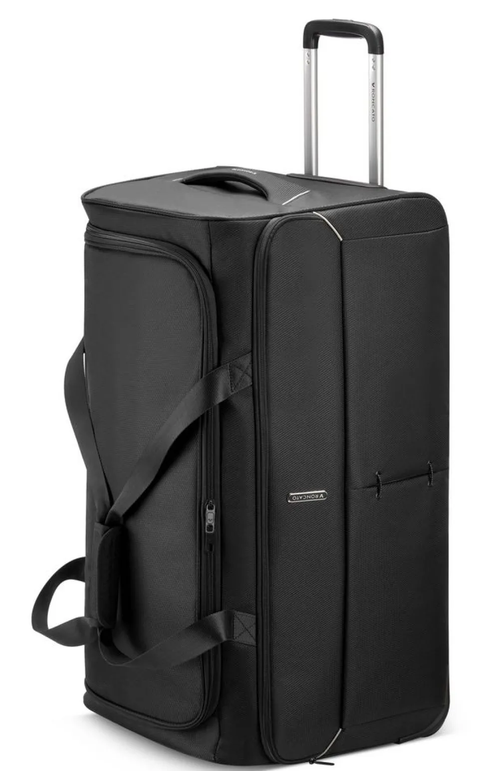 Borsone Trolley Grande Roncato Ironik 2.0 5314. Realizzato in robusto nylon e poliestere, con robuste ruote integrate e carrello di traino telescopico con push botton. Ampia apertura della tasca principale, che consente un comodo accesso. Ampia tasca frontale chiusa da zip. Maniglia superiore di servizio. Garanzia 3 anni