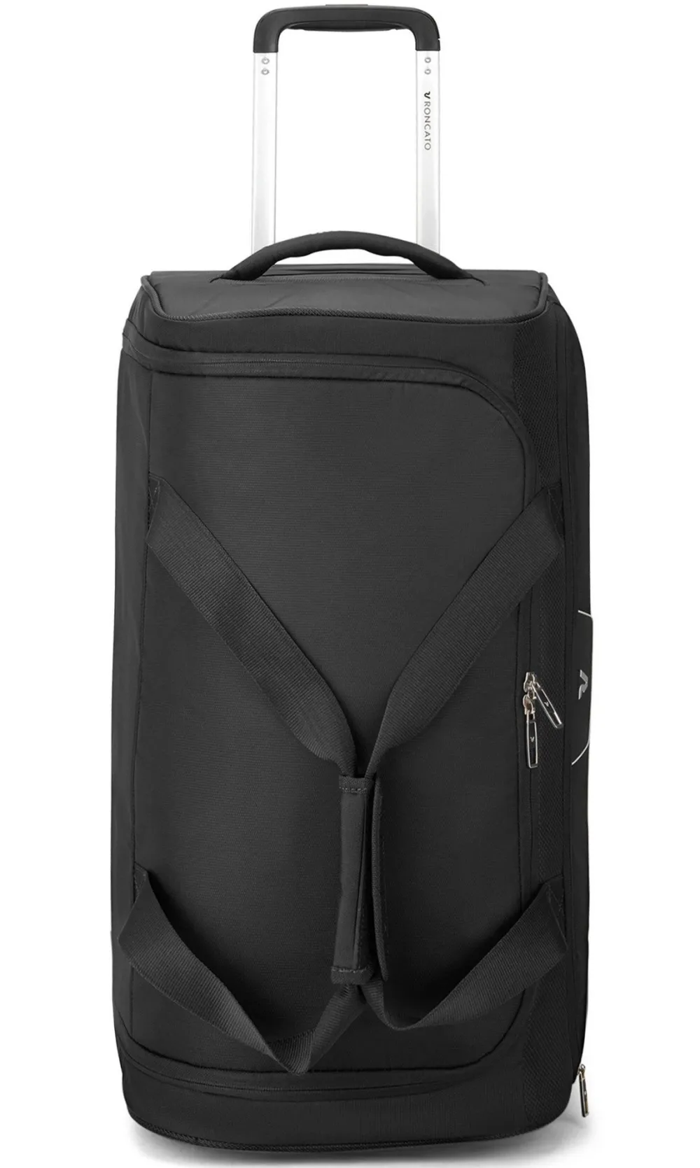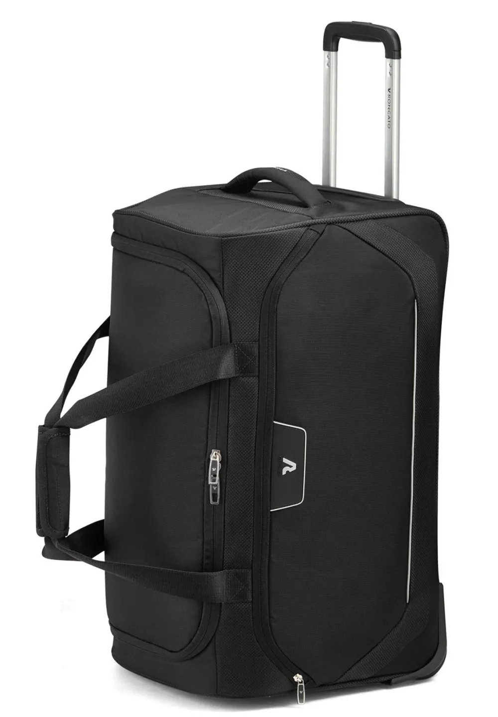 Borsone Trolley Roncato Joy 6204. Realizzato in robusto nylon, con robuste ruote integrate e carrello di traino telescopico con push botton. Ampia apertura della tasca principale, che consente un comodo accesso. Ampia tasca frontale chiusa da zip. Maniglia superiore di servizio. Garanzia 2 anni