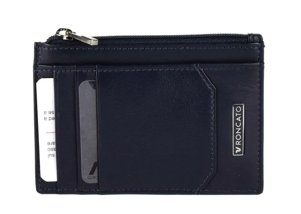 Portadocumenti piatto con zip Roncato Manchester 065. Portafoglio realizzato in vera di alta qualità , ampio comparto principale portadocumenti chiuso da zip, due frontali organizzati per bancomat e carte di credito. Schermatura RFID.