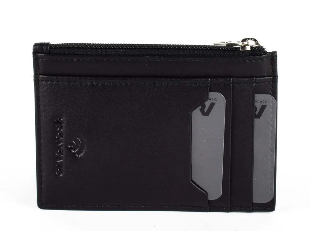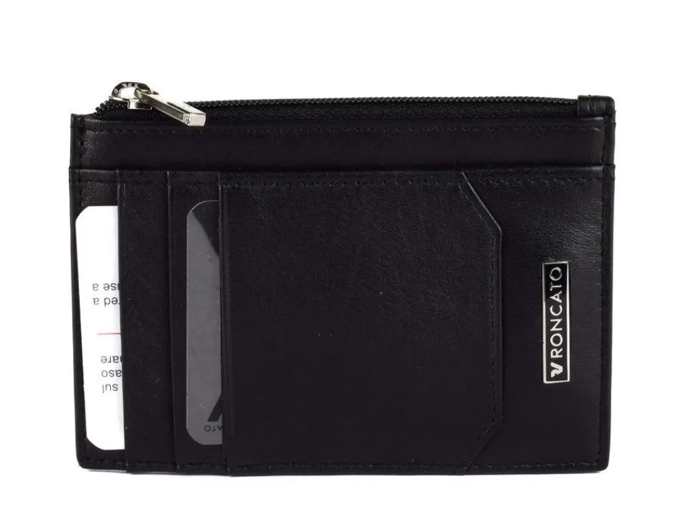 Portadocumenti piatto con zip Roncato Manchester 065. Portafoglio realizzato in vera di alta qualità , ampio comparto principale portadocumenti chiuso da zip, due frontali organizzati per bancomat e carte di credito. Schermatura RFID.