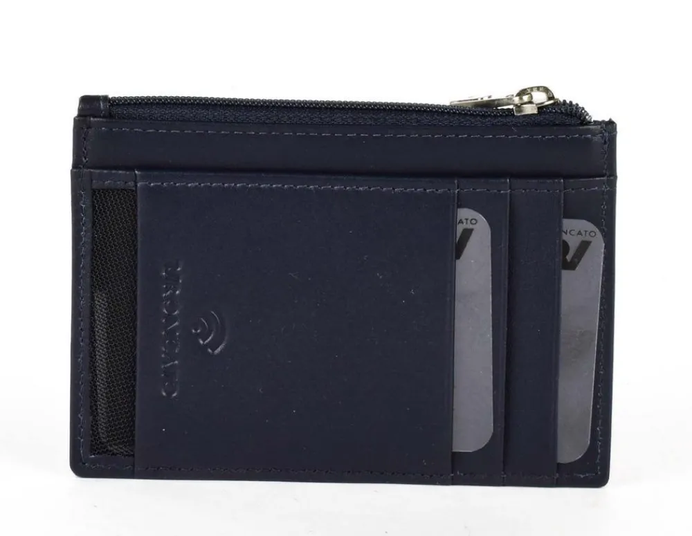 Portadocumenti piatto Roncato Manhattan 645. Portafoglio realizzato in vera di alta qualità , ampio comparto principale portadocumenti chiuso da zip, due frontali organizzati per bancomat e carte di credito. Schermatura RFID.