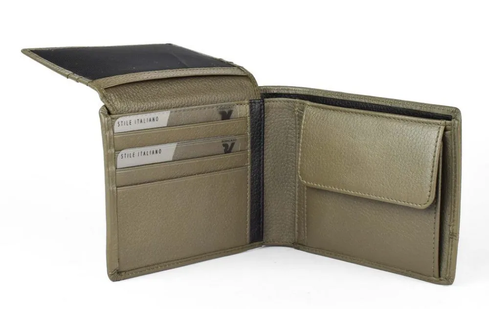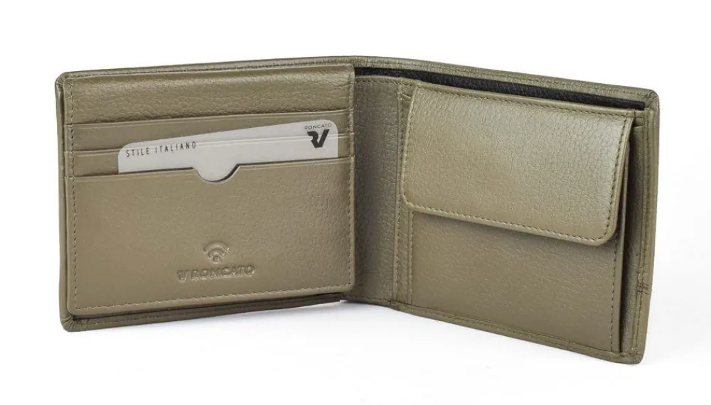 Portafoglio uomo in pelle Roncato Alaska 2410. Realizzato in pelle di alta qualità , con vano portadocumenti, tasca portamonete chiusa da bottone, ribalta portadocumenti e doppio vano portabanconote. Schermatura RFID