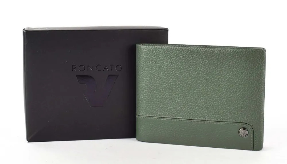 Portafoglio uomo in pelle Roncato Alaska 2411. Realizzato in pelle di alta qualità , con vano portadocumenti, tasca portamonete chiusa da bottone e doppio vano portabanconote. Schermatura RFID