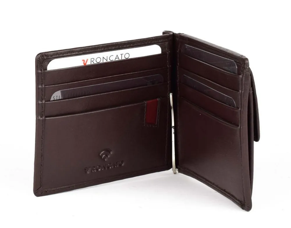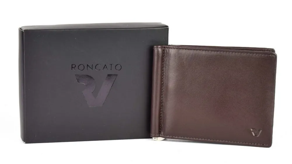 Portafoglio uomo fermasoldi a molla Roncato Pascal 2913. Portafoglio realizzato in vera pelle di alta qualità , con molla interna ferma soldi e vani porta carte di credito sui due frontali. Tasca esterna porta monete chiusa da zip. Schermatura RFID.