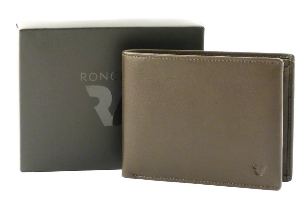 Portafoglio uomo in pelle Roncato Pascal 2901. Realizzato in pelle di alta qualità , con vano portadocumenti, tasca portamonete chiusa da bottone e doppio vano portabanconote. Misure 12,5×9,6×1,5 cm