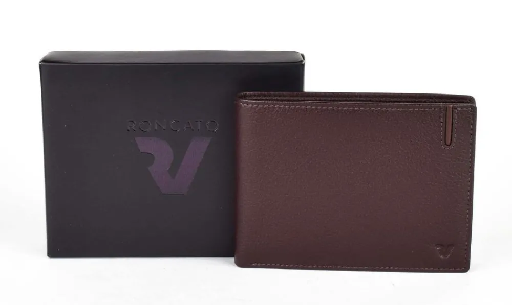 Portafoglio uomo Roncato Liverpool 1041. Realizzato in pelle di alta qualità , con vano portadocumenti, tasca portamonete chiusa da bottone e doppio vano portabanconote. Schermatura RFID
