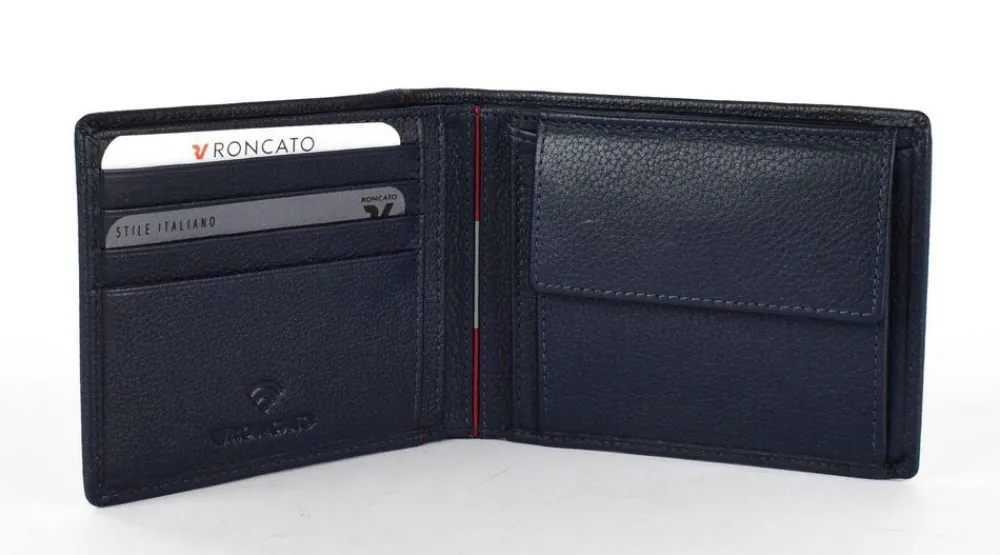 Portafoglio uomo piccolo Roncato Boston 2633. Realizzato in pelle di alta qualità , con vano portadocumenti, tasca portamonete chiusa da bottone e doppio vano portabanconote. Schermatura RFID