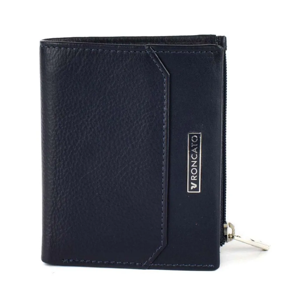 Portafoglio uomo piccolo Roncato Manchester 063. Realizzato in pelle di alta qualità , vano porta carte di credito e vano portabanconote. Tasca portamonete chisua da zip. Protezione RFID per le Vostre carte di credito. Logo Roncato frontale.