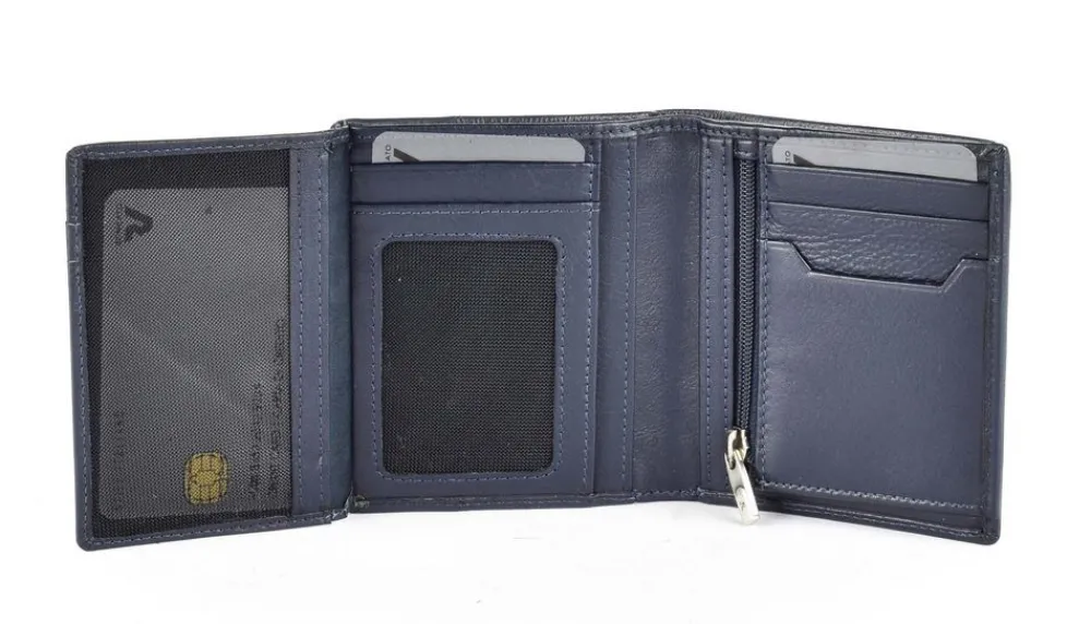 Portafoglio uomo piccolo Roncato Manchester 066. Realizzato in pelle di alta qualità , vano porta carte di credito, vano portabanconote e ribalta portadocumenti. Tasca portamonete chisua da zip. Protezione RFID per le Vostre carte di credito. Logo Roncato frontale.