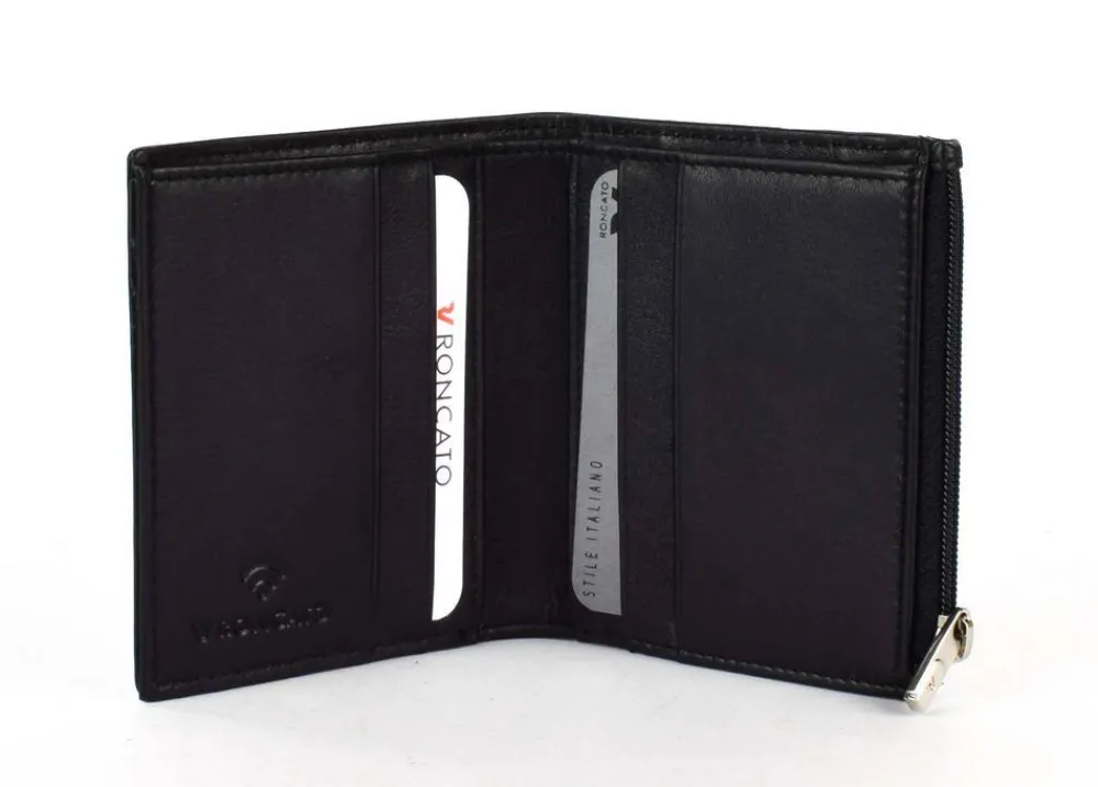 Portafoglio uomo piccolo Roncato Sidney 2474. Realizzato in pelle di alta qualità , vano porta carte di credito e vano portabanconote. Protezione RFID per le Vostre carte di credito. Logo Roncato frontale.