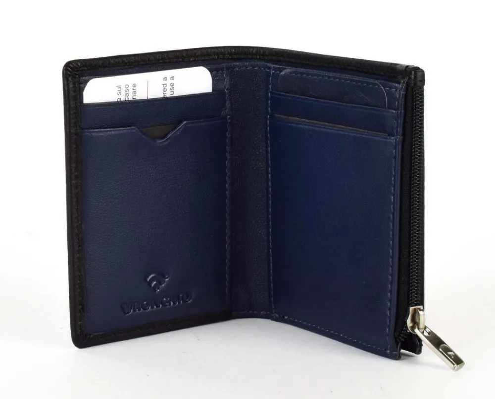 Portafoglio uomo piccolo Roncato Vesuvio 0025. Realizzato in pelle di alta qualità , con vano porta carte di credito, tasca portamonete chiusa da zip e doppio vano portabanconote. Protezione RFID per le Vostre carte di credito. Logo Roncato frontale.