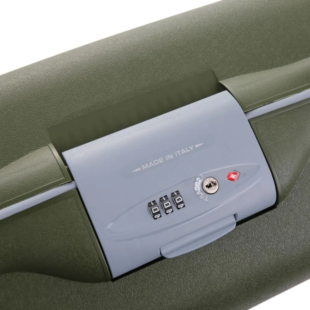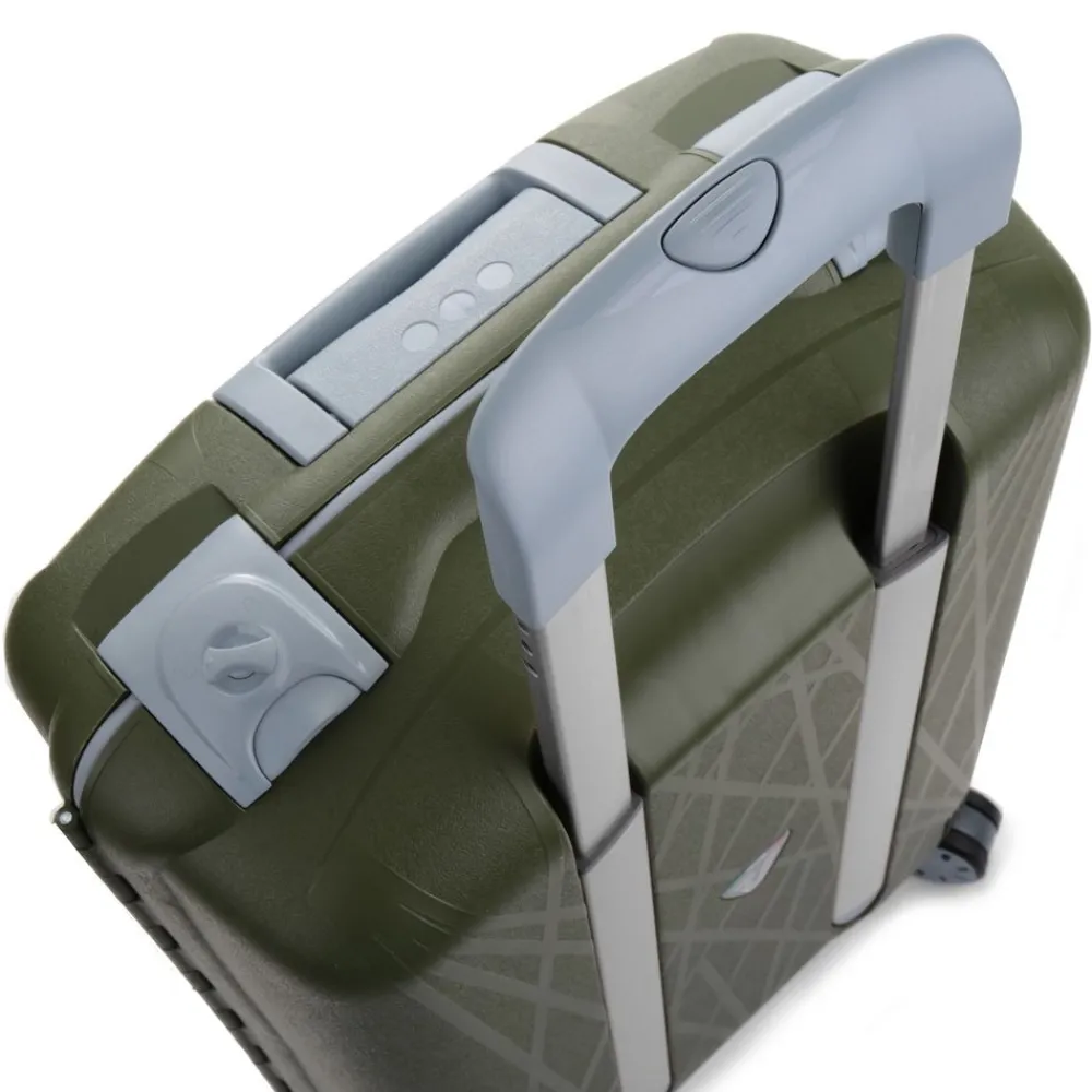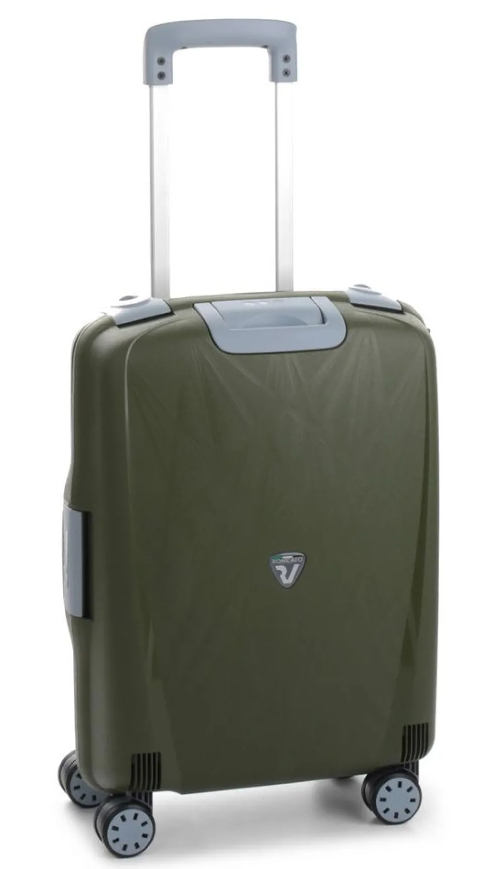 Trolley Roncato Light 4 ruote cabina art 714. Trolley in polipropilene ultraleggero realizzato interamente in Italia, con maniglia di traino integrata, 4 ruote piroettanti, maniglia superiore integrata, interno accessoriato con divisorio e tasche per piccoli oggetti, sistema di sicurezza altamente resistente (composto da 3 chiusure con blocco di sicurezza e una combinazione centrale dotata di sistema TSA per i Vostri viaggi negli Stati Uniti). I motivi grafici sul frontale del trolley ricordano una ragnatela e sono il frutto di una ricerca specifica da parte dell’azienda produttrice. Durante il processo produttivo il polipropilene viene iniettato all’interno dello stampo in maniera sequenziale, riducendo così lo spessore della plastica (e quindi il peso) e garantendo grandi doti di elasticità e resistenza. Un occhio attento anche alla salvaguardia dell’ambiente. Il trolley è riciclabile al 100% ed è costruito utilizzando un sistema di produzione e assemblaggio studiato per ridurre l’emissione di CO2 nell’ambiente. Test effettuati sul prodotto: Test di caduta : a pieno carico – Test di tamburo : 20 rotazioni a pieno carico – Ruote : 32.000m a pieno carico – Serrature : 7.500 aperture/chiusure – Maniglie : 5000 cicli a pieno carico