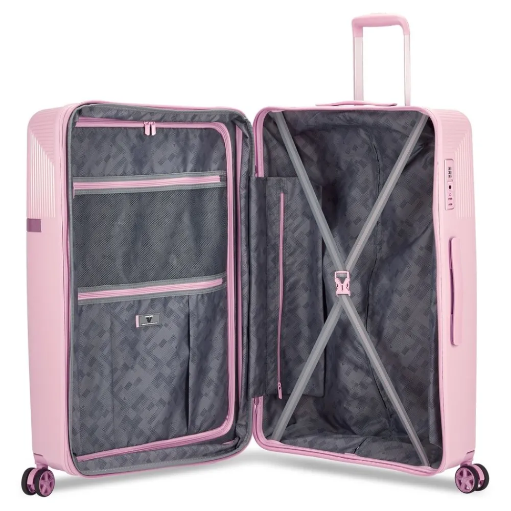 Trolley espandibile Roncato AirGlam grande 9751. Trolley realizzato in robusto policarbonato/ABS, 4 ruote doppie piroettanti per la massima manovrabilità , carrello di traino telescopico con push botton, chiusura a tripla combinazione con sistema TSA per gli Stati Uniti, zip di espansione che consente di aumentare la capacità a seconda delle necessità . Interno completamente foderato con divisorio e tasche per piccoli oggetti. Garanzia 3 anni.