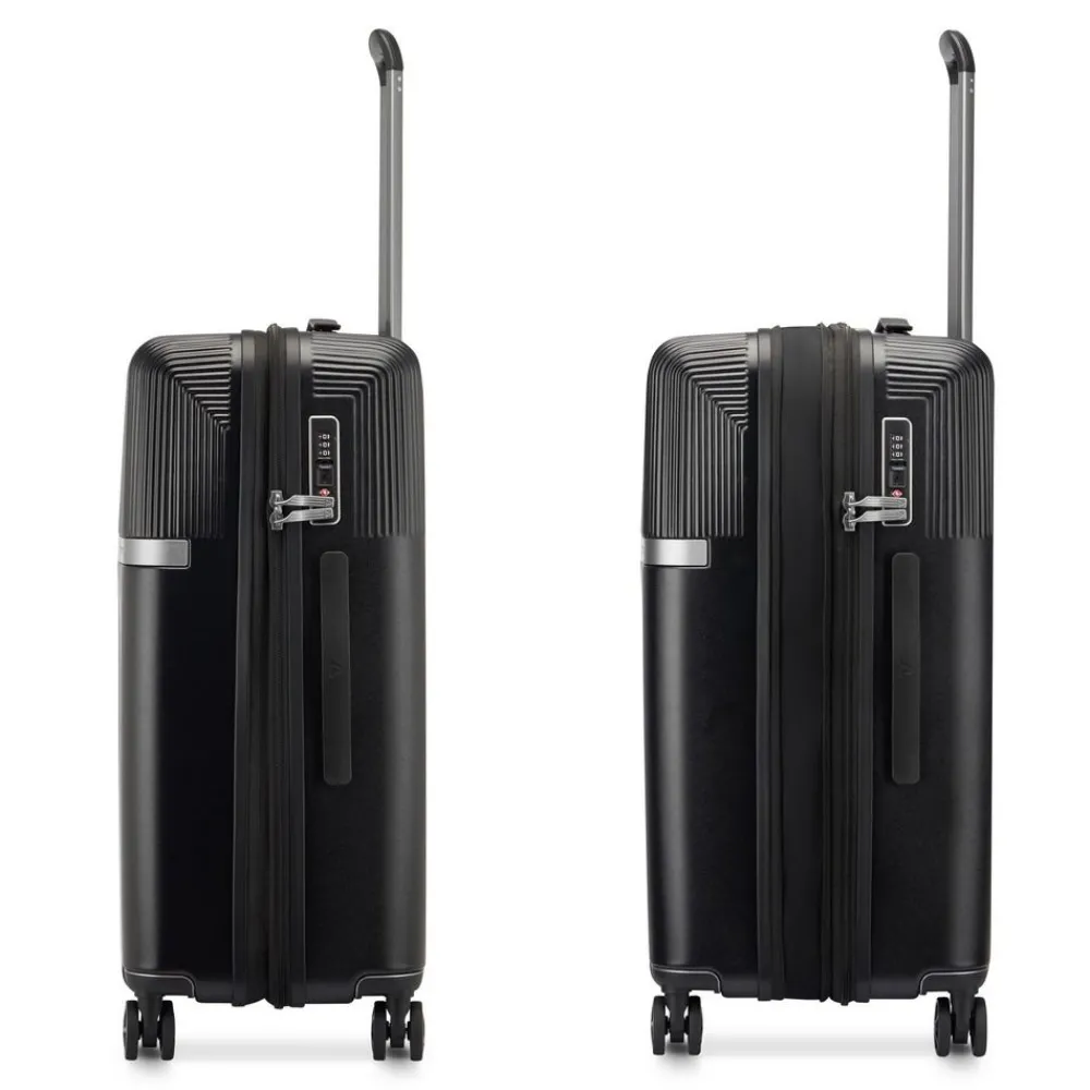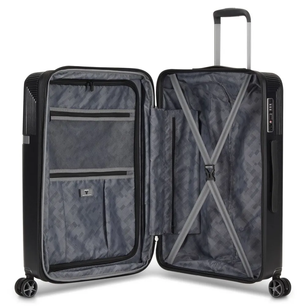 Trolley espandibile Roncato AirGlam medio 9752. Trolley realizzato in robusto policarbonato/ABS, 4 ruote doppie piroettanti per la massima manovrabilità , carrello di traino telescopico con push botton, chiusura a tripla combinazione con sistema TSA per gli Stati Uniti, zip di espansione che consente di aumentare la capacità a seconda delle necessità . Interno completamente foderato con divisorio e tasche per piccoli oggetti. Garanzia 3 anni.