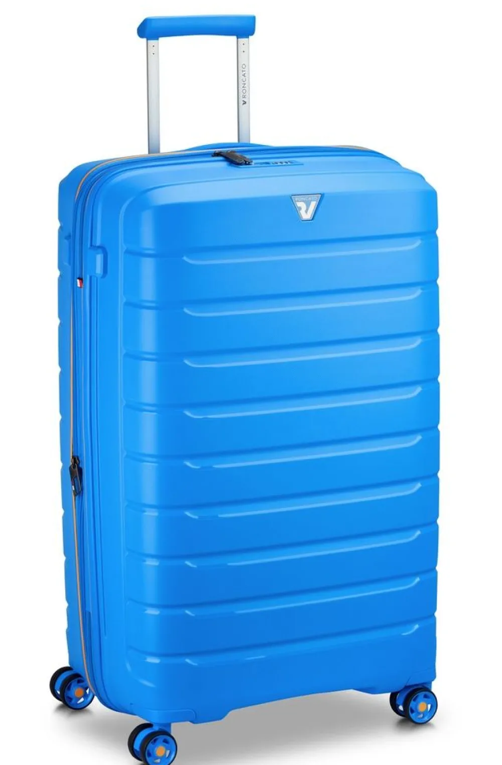 Trolley espandibile Roncato B-Flying grande 8181. Trolley realizzato in robusto Polipropilene ultraleggero, 4 ruote doppie piroettanti per la massima manovrabilità , carrello di traino telescopico con push botton, chiusura a tripla combinazione con sistema TSA per gli Stati Uniti, zip di espansione che consente di aumentare la capacità a seconda delle necessità . Interno completamente foderato con divisorio e tasche per piccoli oggetti. Garanzia 2 anni.